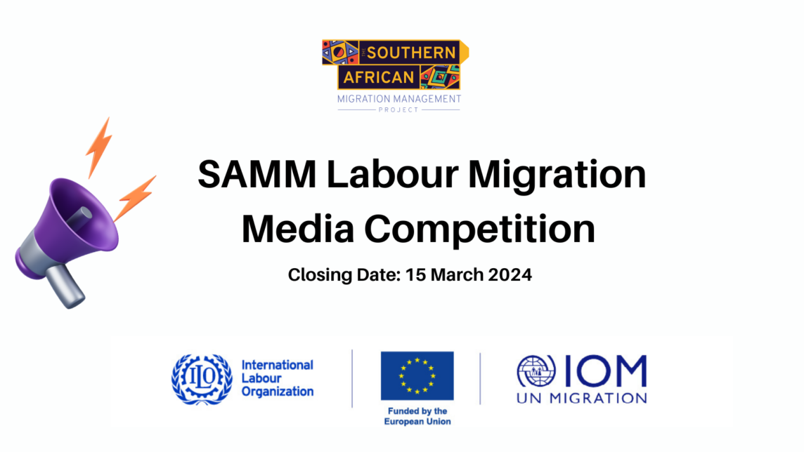 The ILO and IOM under the banner of the SAMM Project is launching a Media Competition on Labour Migration in the Southern African region, funded by the European Union. The aim is to recognize exemplary journalists and media practitioners who have been, or are, contributing to the media landscape by covering any of the ten SAMM labour migration thematic areas[1] in SADC Countries, while ensuring that hate speech, discrimination, racism and xenophobia are combated, and strengthening social cohesion and solidarity toward migrant workers and their families.